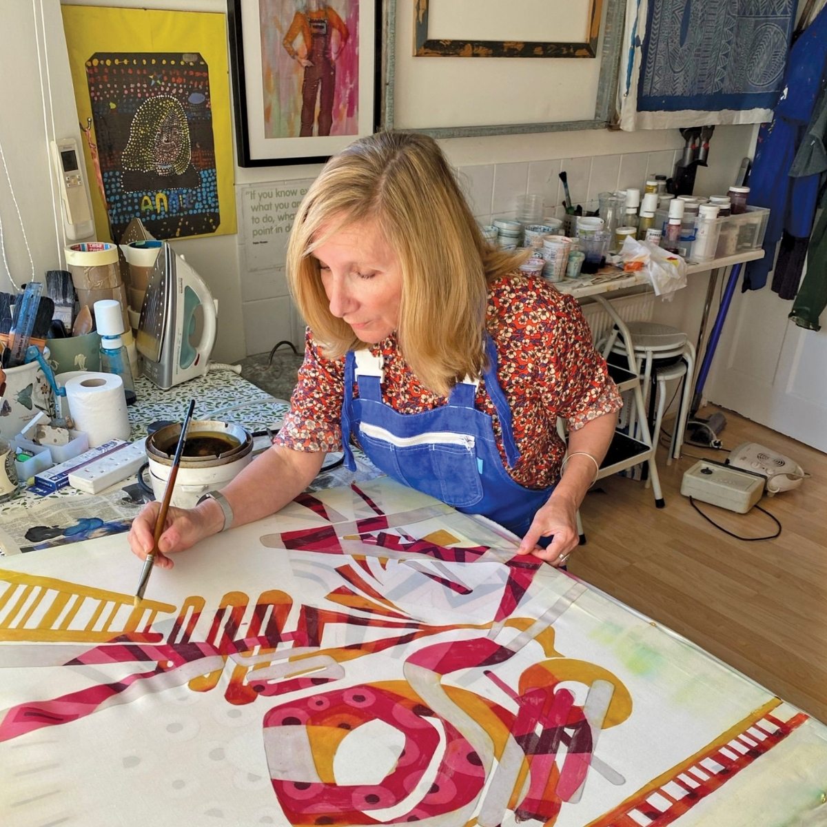 “Batik is a medium that can create many types of looks depending on the artist’s heritage and culture. For example, Indonesian batiks look very different to African batiks that look very different to mine. Because I am from the UK the inspiration for my batiks comes from 20th century abstract painters such as Kandinsky and Picasso. When I find a tjanting in my hand full of hot wax, something happens to my physiological being. I relax, I calm and then I begin to play! Batik has always been a process that has allowed me to approach creating with freedom and experimentation, with my destination unknown.”